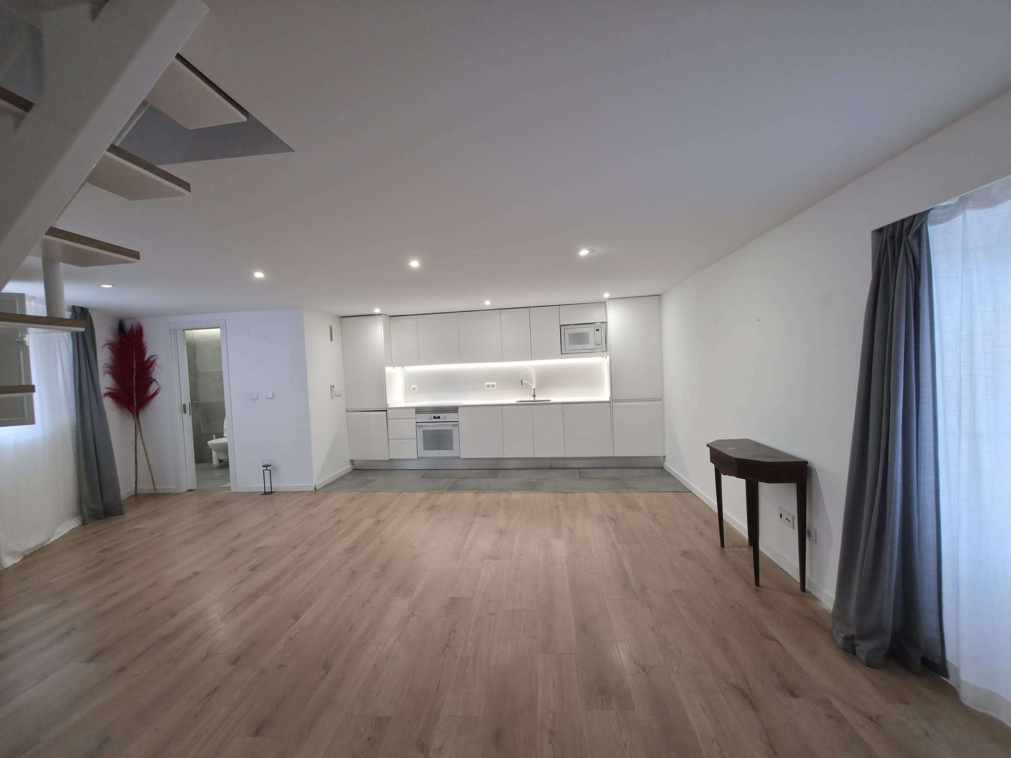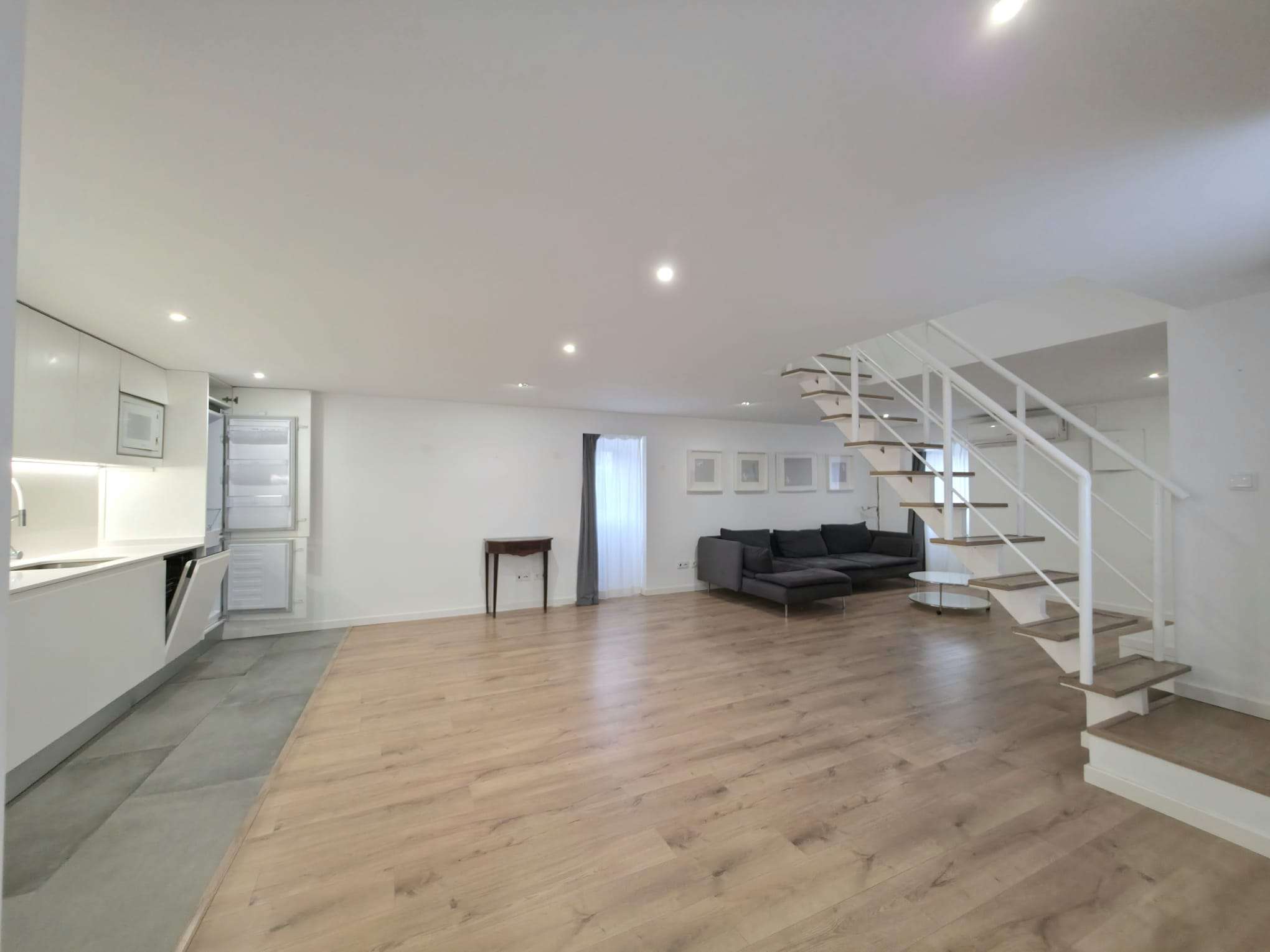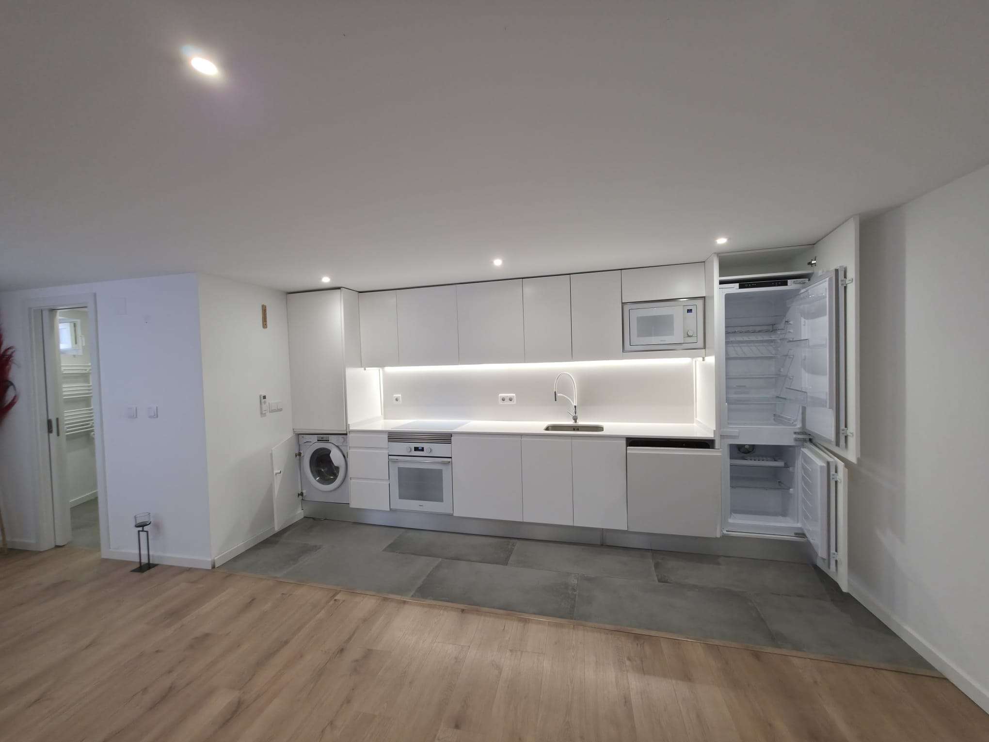 Imóvel composto por rés do chão com casa de banho completa, sala em “open space” com a cozinha totalmente equipada (frigorifico, placa elétrica, forno, exaustor, máquina de lavar loiça, máquina de lavar roupa, micro-ondas, termoacumulador).