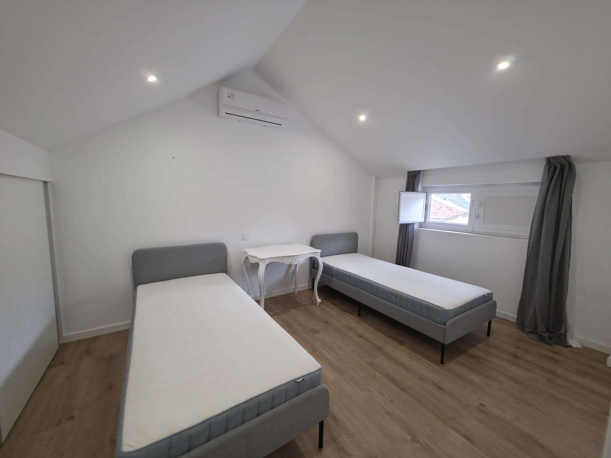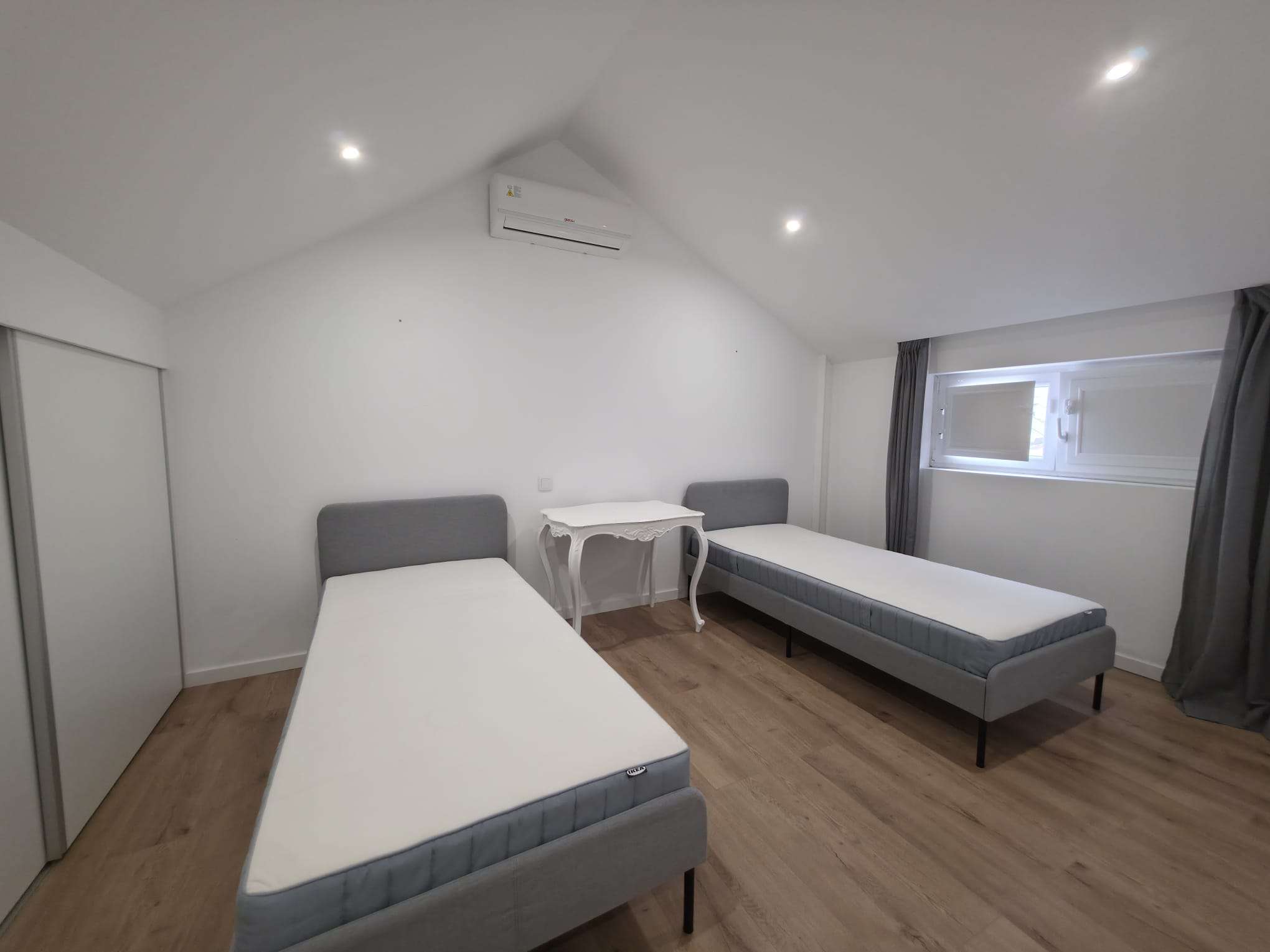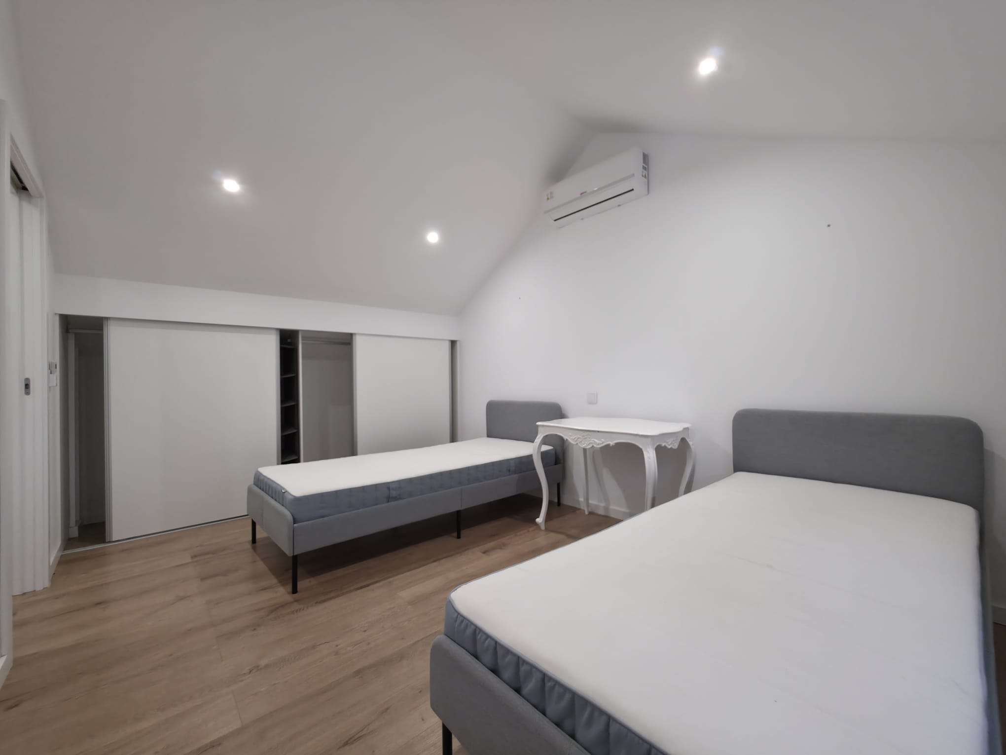 Primeiro andar com 2 quartos com roupeiro e um roupeiro no hall.
